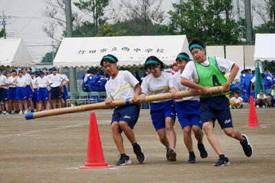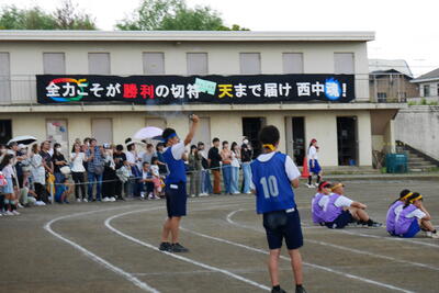 雨が心配されましたが、予定どおり、令和7年度体育大会が開催されました。行田市議会議長様をはじめ、市議会議員様。行田市教育委員会事務局 様、地元自治会連合会長 様。民生児童委員 様、本校学校運営協議会委員 様、西小・泉小学校運営委員会長 様、が、来賓として御臨席を賜りました。生徒は、普段見られないような表情がみられた成果があり、価値ある学校行事となりました。