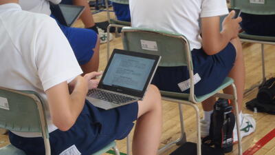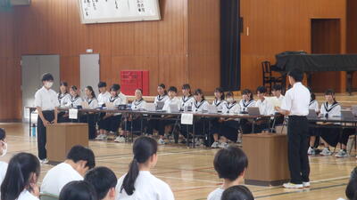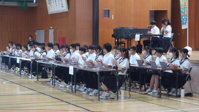 よりよい西中学校を築くため、生徒総会が行われました。学級審議を経て出された質問に対して、執行部が答弁していました。全ての議案が可決しました。