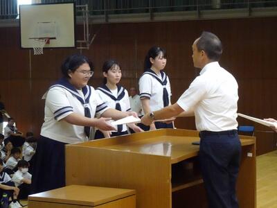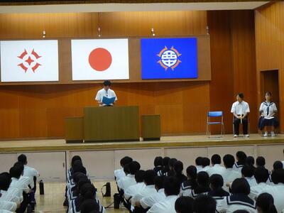 表彰の後、始業式が執り行われました。各学年の代表者から2学期の抱負が述べられました。