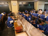 スキー学校2日目、講習後の活動の様子です。お風呂(中広間ではトランプ交流)、夕食、実習動画鑑賞(2日間の実習の様子の写真やビデオを鑑賞)、インストラクターさんへのお礼の手紙を書きました。スキー以外の部分でも少しずつ成長が見られるようになりました。