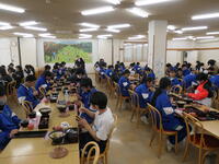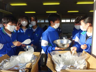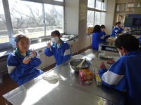 31日(火)2年生の家庭科の授業で、災害に備えた暮らしの一環でアルファ化米わかめごはんの試食をしました。避難生活を想定し、皿や箸を使わず、ラップを使いおにぎりにしました。乾燥した状態のアルファ化米に熱湯を注ぎ、15分ほど待つことで普段のご飯のように食べられることに驚いていました。