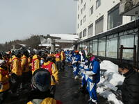4回の講習を終えて、スキー学校閉校式をホテル前にて行いました。スキー学校の校長先生から修了証をいただき、各班のインストラクターさんに感謝の手紙、ホテルの人達にお礼の色紙を渡しました。ホテル出発後、帰り道のフルーツランドにて昼食、旅行支援でいただいたお土産をもらって帰校しました。3日間で多くの事を学び、大きく成長できたスキー学校でした。今後の生活にこの学びを活かしていきましょう!!