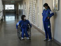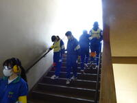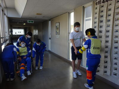 30日(月)3年生の家庭科の授業で、高齢者疑似体験を行いました。実際に体験してみると、視野は狭くなり、周りが見えなくなると驚いていた生徒が多く、前かがみにゆっくりとしか歩けませんでした。また、階段の上り下りも段差に足がひっかかりそうになる場面が多く見られ、いつもと違う様子に慎重にならざるを得ませんでした。介助役の生徒もどのように介助したら歩きやすいかを考えながら、大きな声でしっかりと丁寧に声かけをしていました。