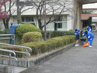 7日(水)学校応援団の剪定担当の方に来校していただき、校内の庭木の剪定をしていただきました。まず応援団の方々が先行して剪定をした後に、緑化委員の生徒が片付けをするという形で行いました。寒い時期でしたが、応援団の方々は汗をかきながら一生懸命に作業をしてくださいました。生徒も黙々と気がついたところを掃除してくれました。みなさんの力で、今年度、一番きれいな状態になりました。ありがとうございました!