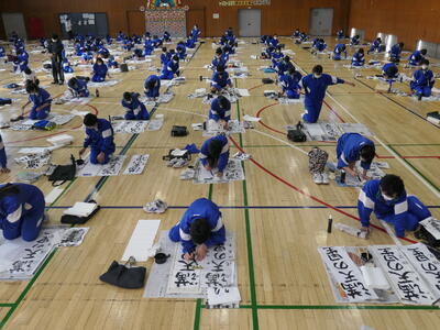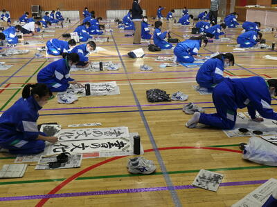 7日(水)には1年生が、8日(木)には2年生が競書会を体育館で行いました。1年生は「書の文化」、2年生は「満天の星」と2時間、全員が一言もしゃべらず、真剣に一生懸命に文字を書いていました。とてもよい時間をみんなで共有できました。