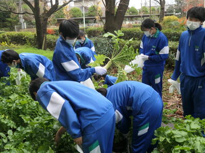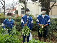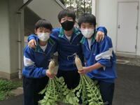 13日(火)2年生が技術室前で栽培していた大根の収穫を行いました。自分が一生懸命に育てた大きくなった大根を見て、たくさんの笑顔が見られました。家庭に持って帰り、美味しくいただく予定です。
