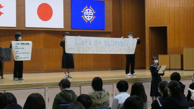 16日(金)6校時に体育館にて1年生の「スキー学校説明会」が行われました。前半は実行委員の生徒から、スローガンの発表、持ち物や決まりの確認、係長から係の仕事等の説明がありました。後半は教員から行程の説明、添乗員さんや校長のあいさつがありました。保護者の皆様、寒い中の御来校ありがとうございました。本番は1月19日(木)からです。とても楽しみです。