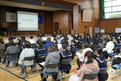 25日(火)に3年生生徒・保護者を対象に進路PTA(進路学習会)が行われました。とても寒い日でしたが、参加者はメモを取りながらとても熱心に話を聞いていました。高校入試は個人戦ではなく、団体戦です。全員の進路が決まるまで、受験に向けてみんなで頑張ろう!という雰囲気を全員で創り上げて行きましょう。