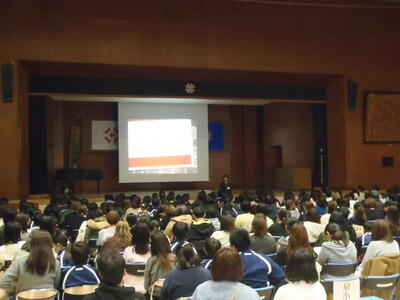 本日午後から、令和8年度入学の新入生説明会が本校体育館で行われました。説明会の後、部活動見学(自由参加)が行われました。