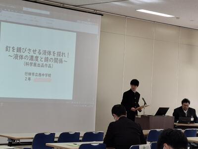 埼玉県理科教育研究発表会 投稿: 西中学校 (02/17) 北埼玉地区の理科教育研究発表会で最優秀賞(中学生の部1位)に輝いた、本校2年生が2月10日(水)に県立総合教育センターで行われた埼玉県理科教育研究発表会において、堂々と発表しました。 Tweet -