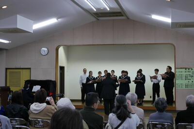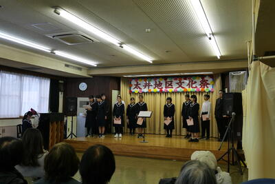 11月8日(土)・9日(日)は、学区内の持田地区と太井地区の文化祭がそれぞれの公民館で行われました。西中学校からは、習字や絵画の作品展示、合唱部(有志)は、もみじ、ハナミズキなどの楽曲4曲を演奏しました。しっとりと素敵な演奏になりました。合唱部のみなさん、雨の中、午前午後と2回の出演お疲れまでした。