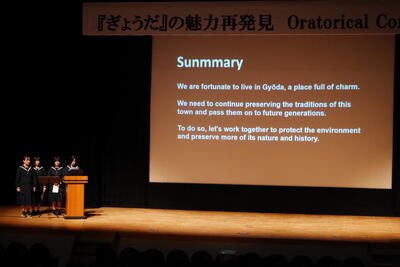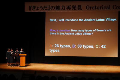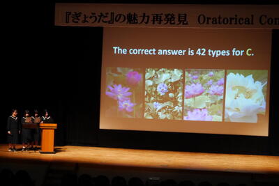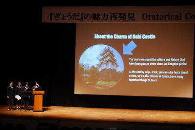 本日、行田市産業文化会館において、「ぎょうだ」の魅力再発見というテーマで、オラトリカルコンテストが行われました。これは、意見や主張を英語で効果的に伝える力を競うスピーチコンテストです。本校から2年生4名が出場し、見事な発音で発表してくれました。本校の生徒が様々なところや場面で活躍しております。